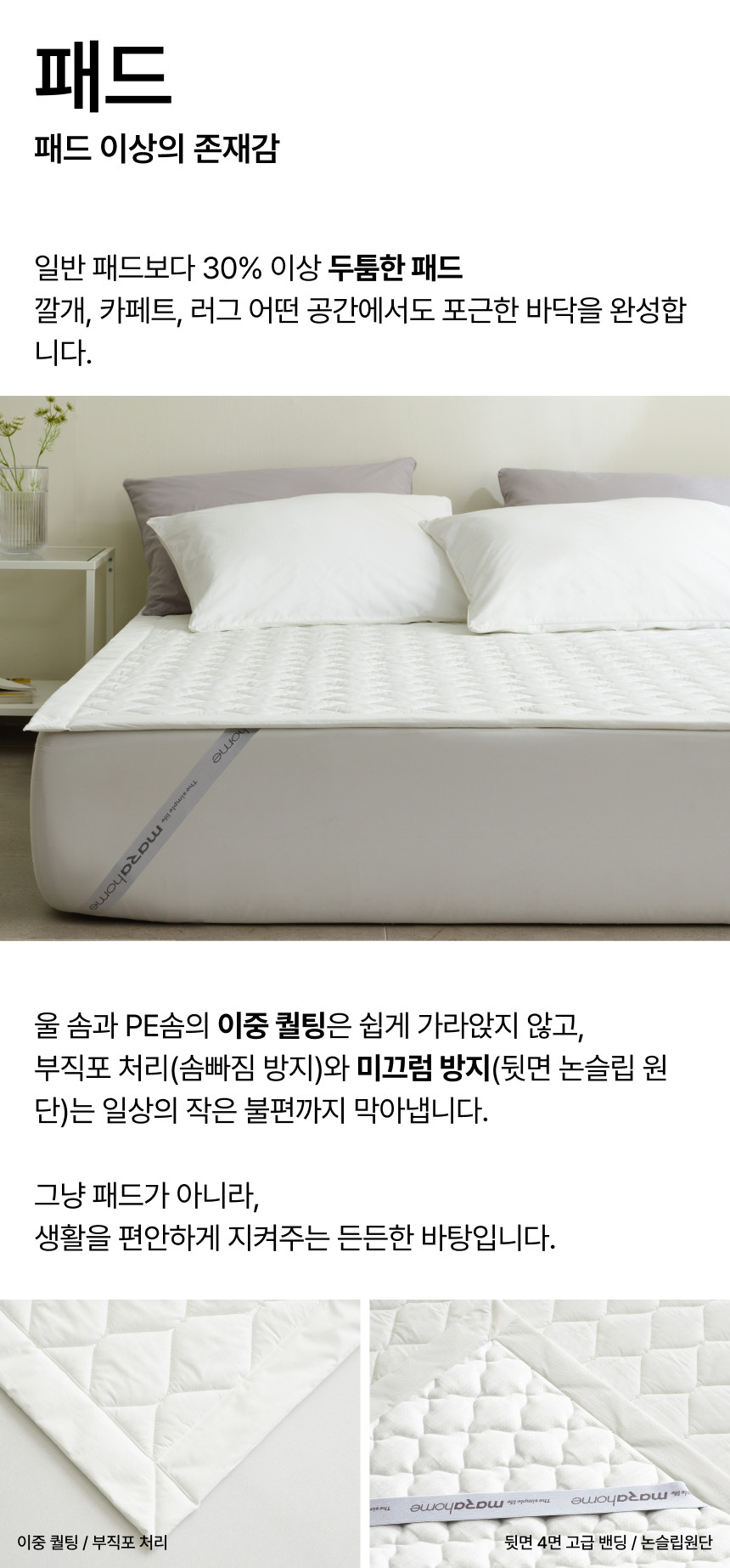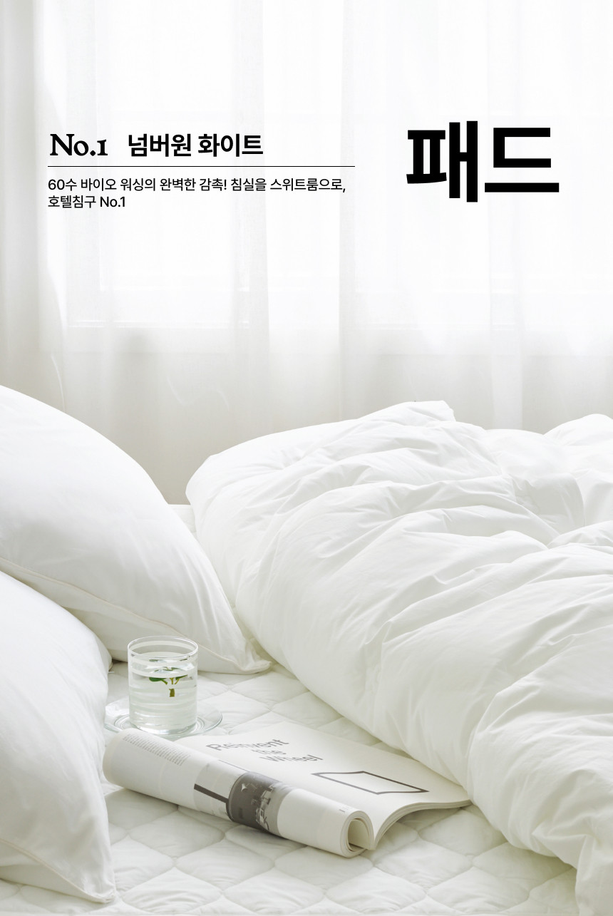 넘버원 화이트 침대 패드(SS, Q, K)