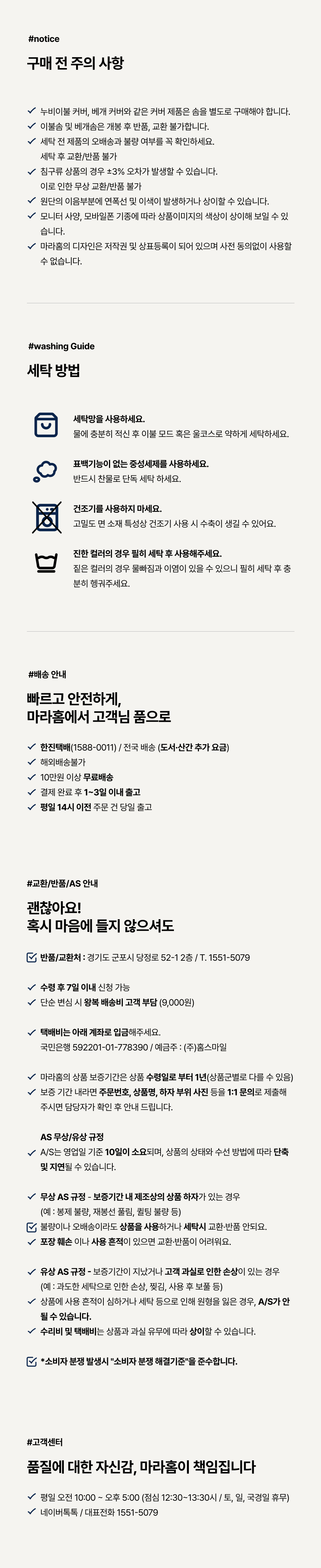 세탁방법 및 취급시 주의사항